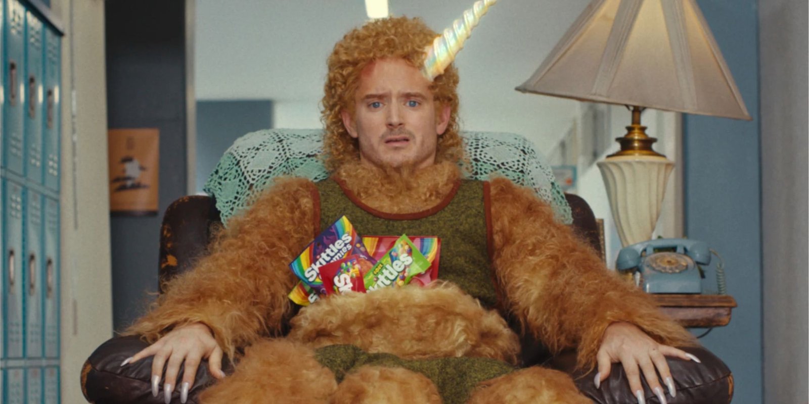 Skittles took an unconventional route by offering one fan a live, in-person commercial delivered to their front door. Actor Elijah Wood was enlisted to perform the ad on-site for the contest winner, part of a campaign that gave fans a chance to win the prize prior to the Super Bowl. The stunt-style approach blurs the line between promotion and performance art.